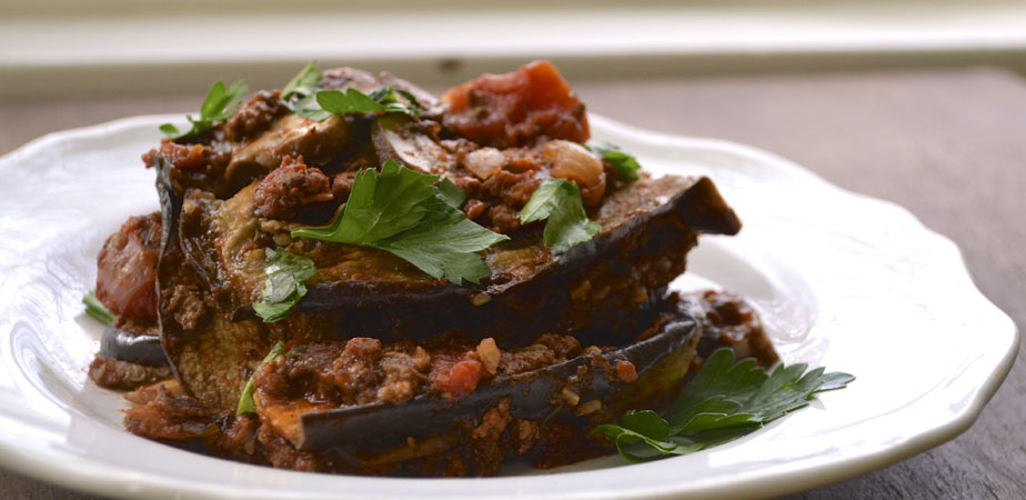 Grillar o saltear las berenjenas cortadas en láminas de 3 o 4 milímetros.